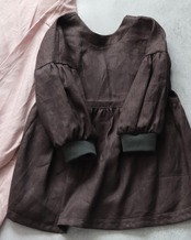 エプロンやスモックとは違う、まるでワンピースのような可愛いデザインで、くるくる回るとふわっと広がる姿は、お子様のお手伝い時間をさらに楽しく彩ります。