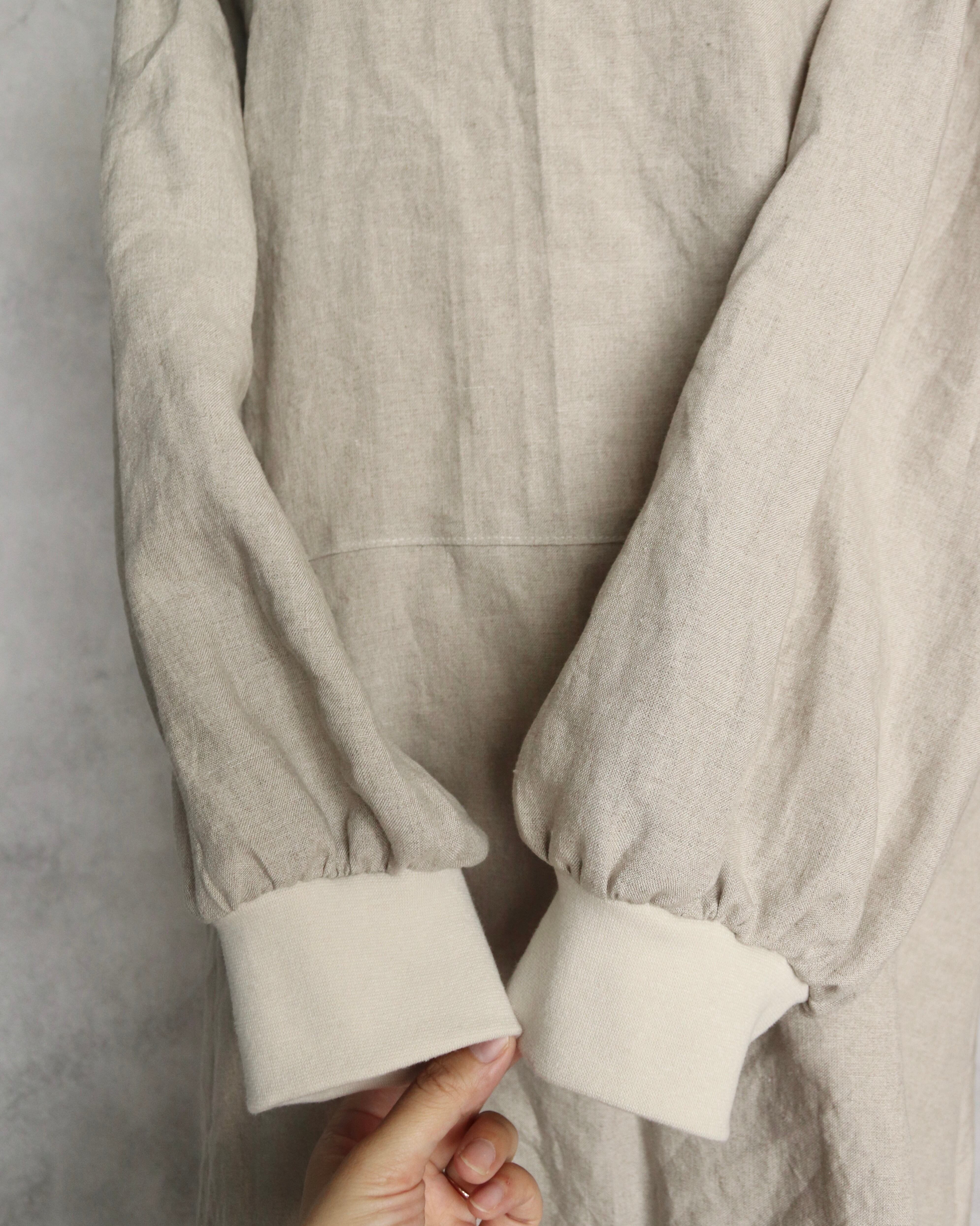 柔らかなリネンで作ったゆったり着られるかっぽう着です。