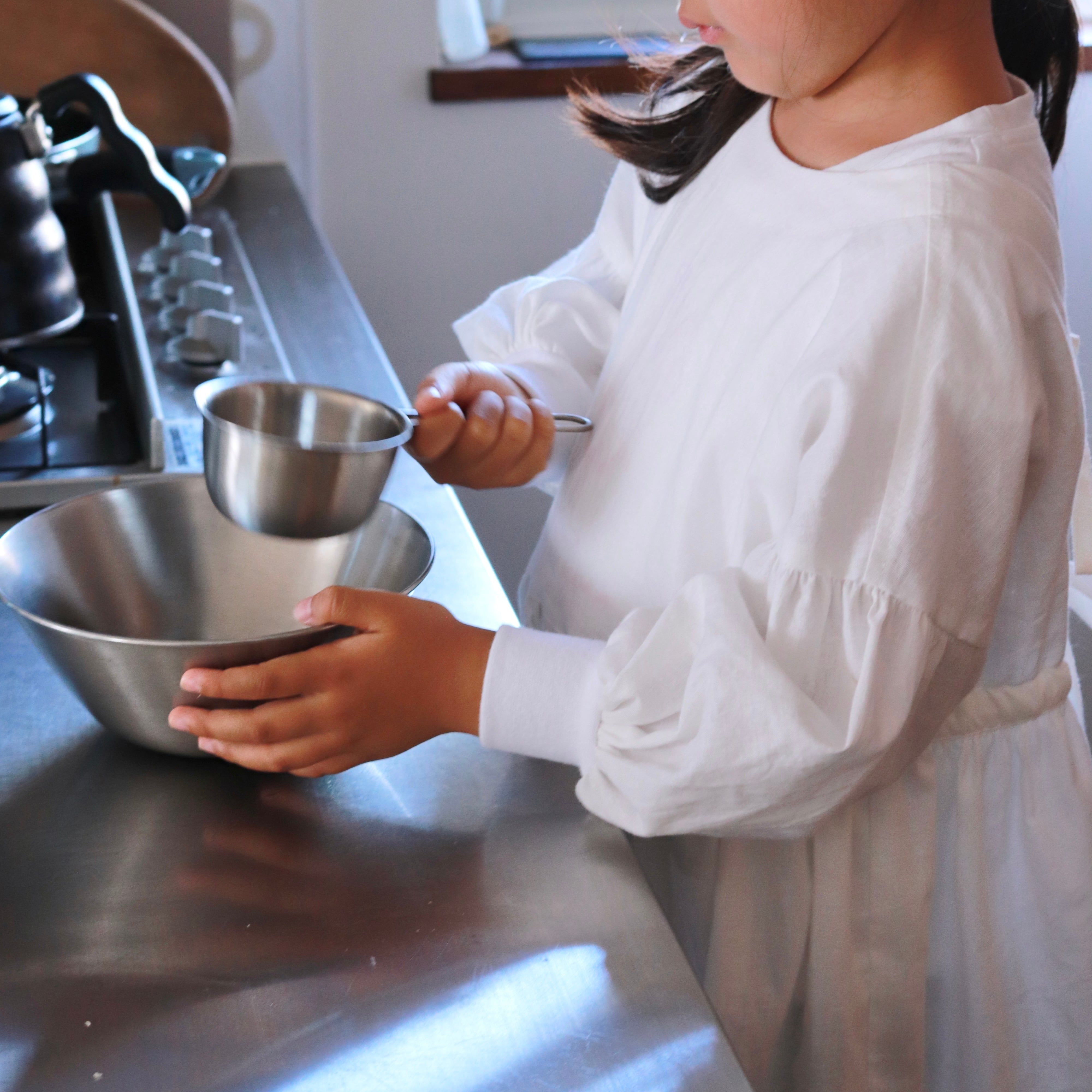 「膝下までしっかりカバーしたい」「丈が長い子ども服がが好き」という方におすすめな一着限りのかっぽう着。