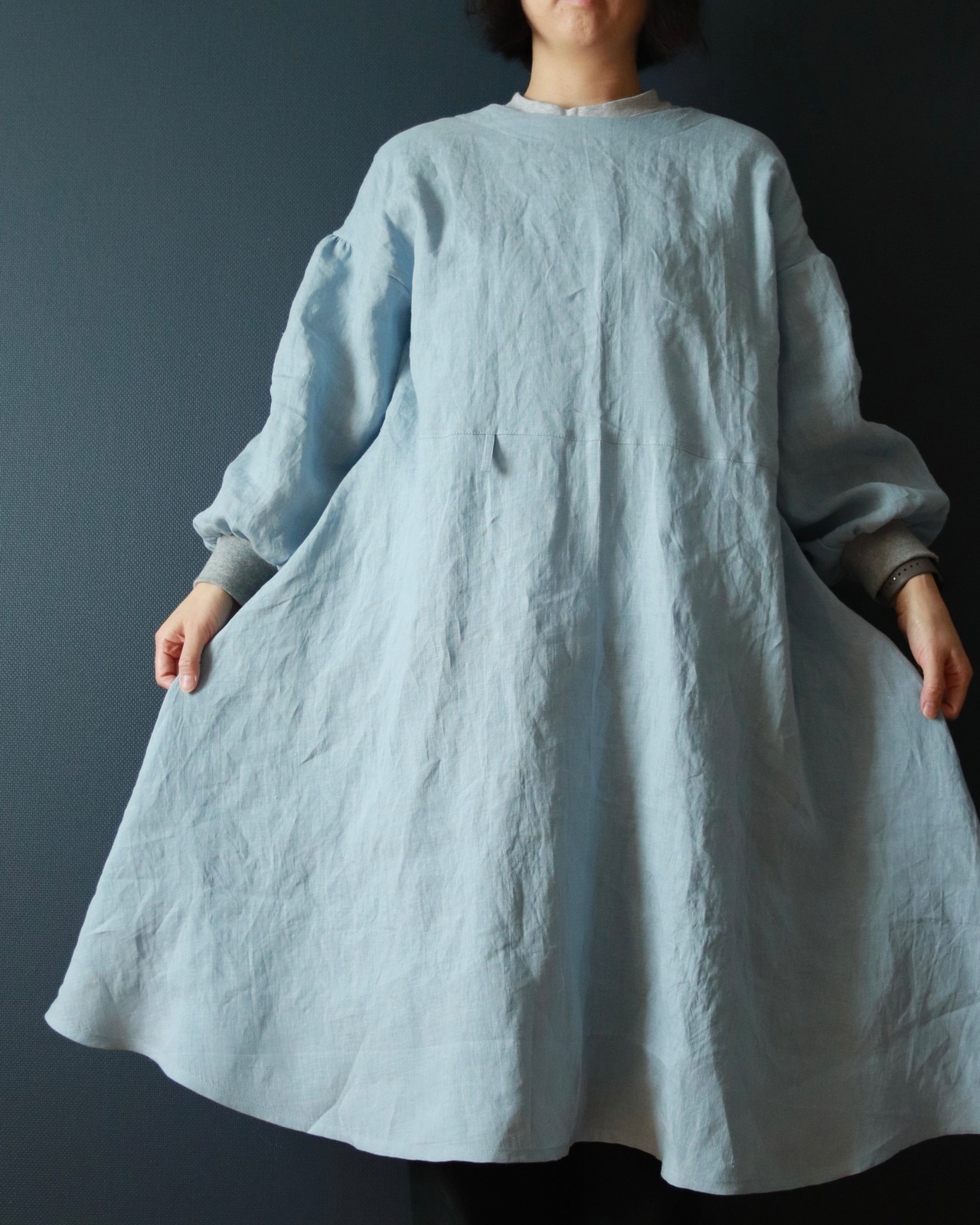 美しいリネンを、家の中だけで着ているなんて勿体無い。たくさん着て欲しいから、前後どちらでも着られるデザインに。