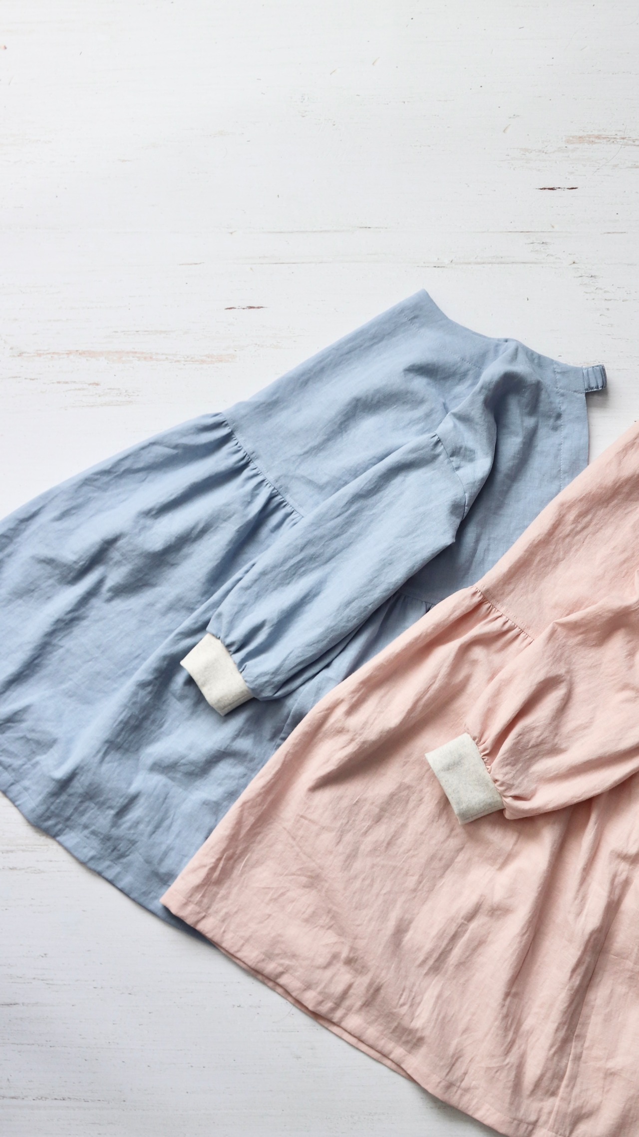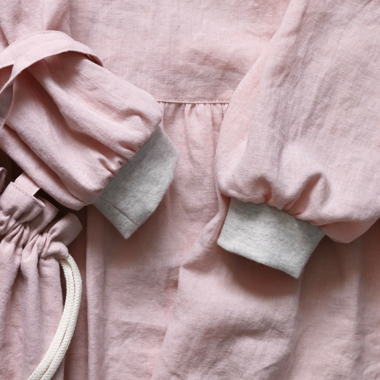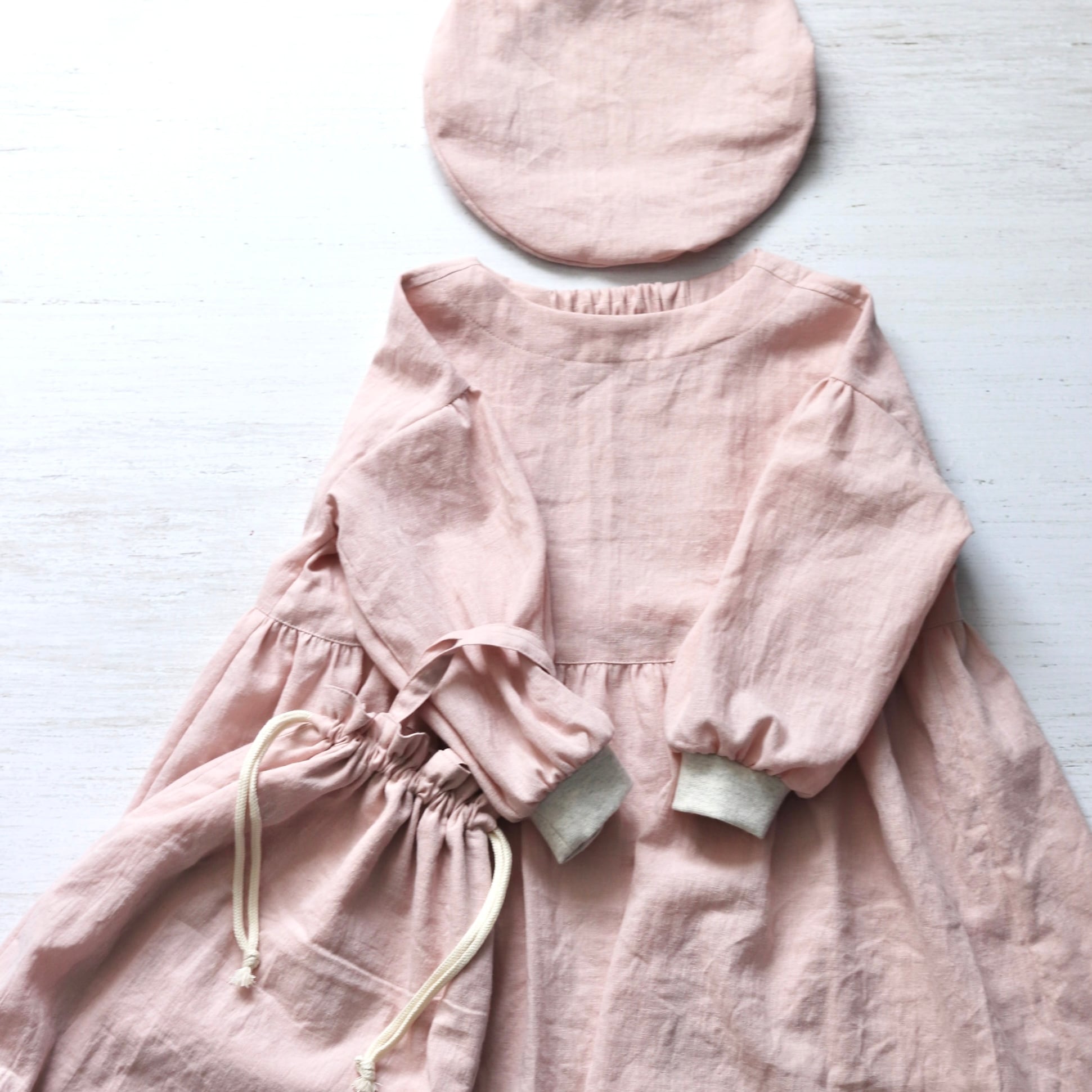 【着せやすい・一人でできる】子ども用かっぽう着 & 給食セット 3点 | S/Mサイズ (105〜140cm) | リネン混・パウダーピンク | 汚れ防止・給食当番 | 入園入学準備