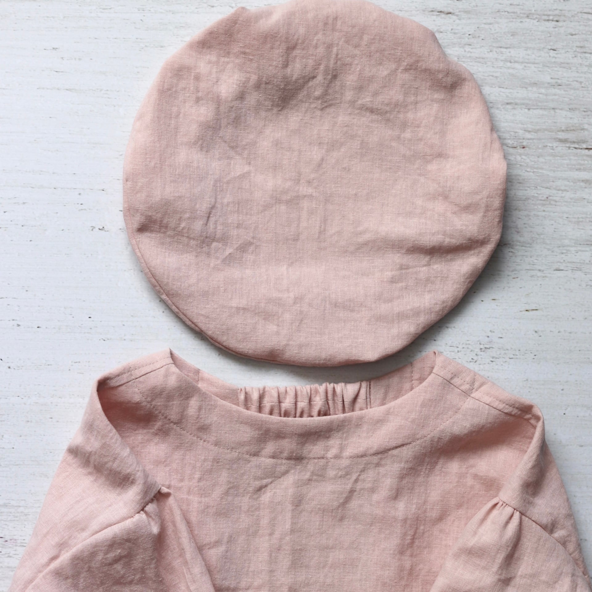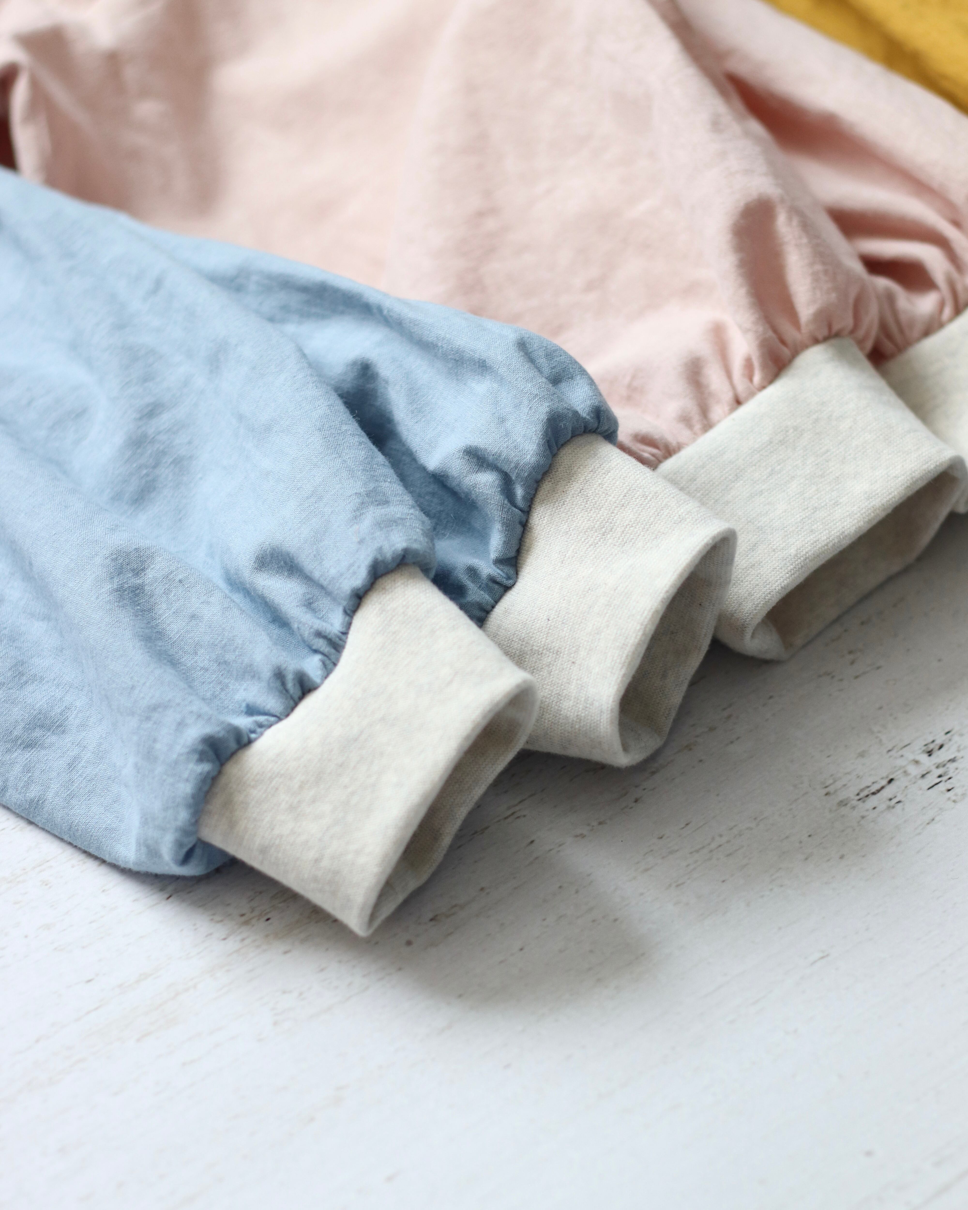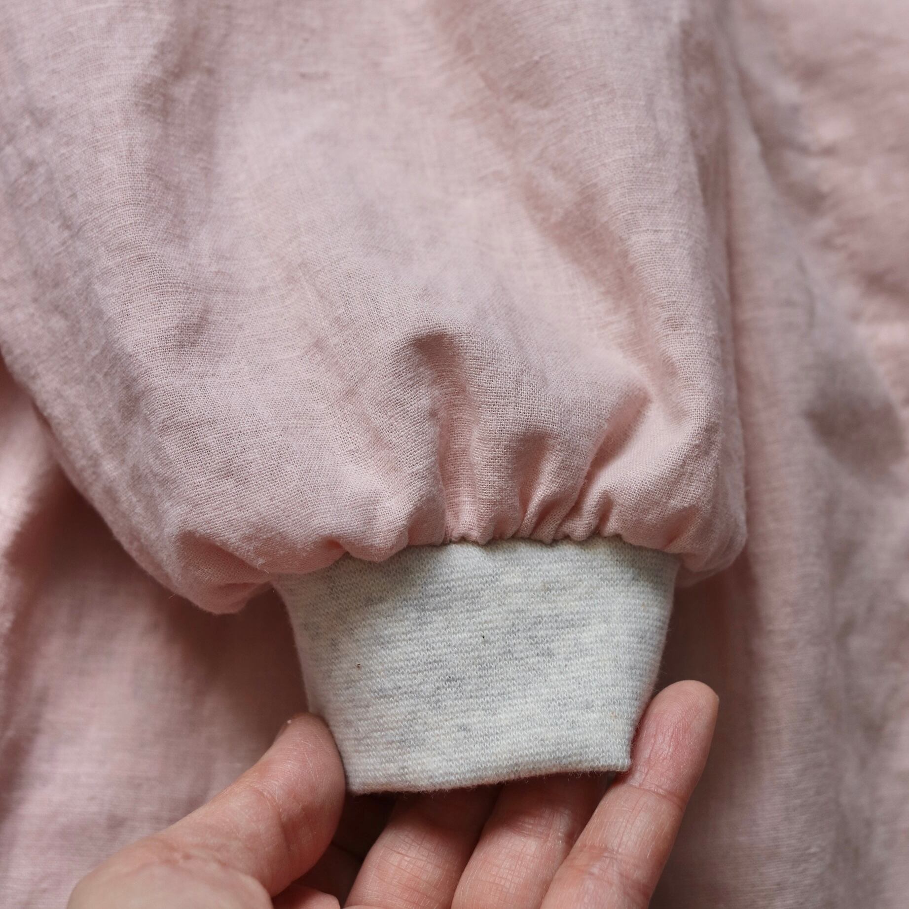 【着せやすい・一人でできる】子ども用かっぽう着 & 給食セット 3点 | S/Mサイズ (105〜140cm) | リネン混・パウダーピンク | 汚れ防止・給食当番 | 入園入学準備