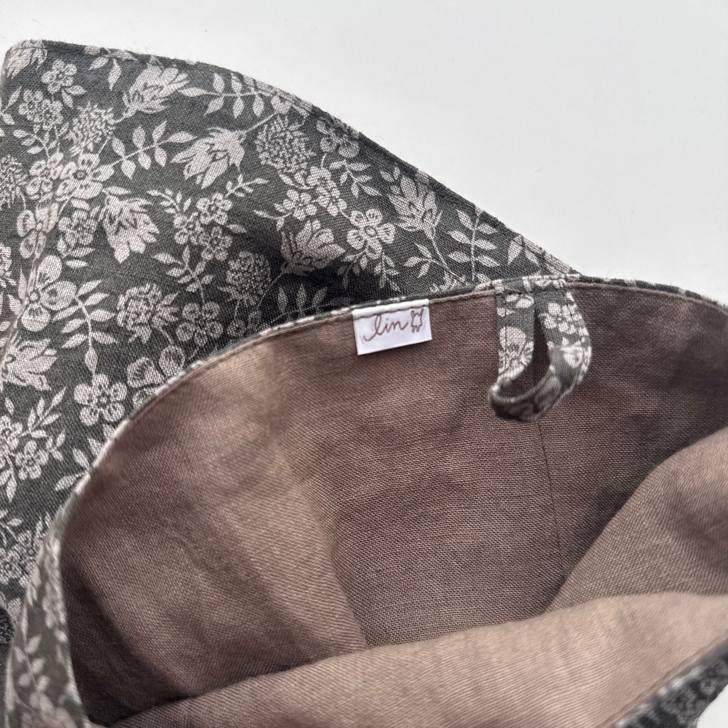 かっぽう着と同じリネン100%生地と日本製のリブニットを使用しています。