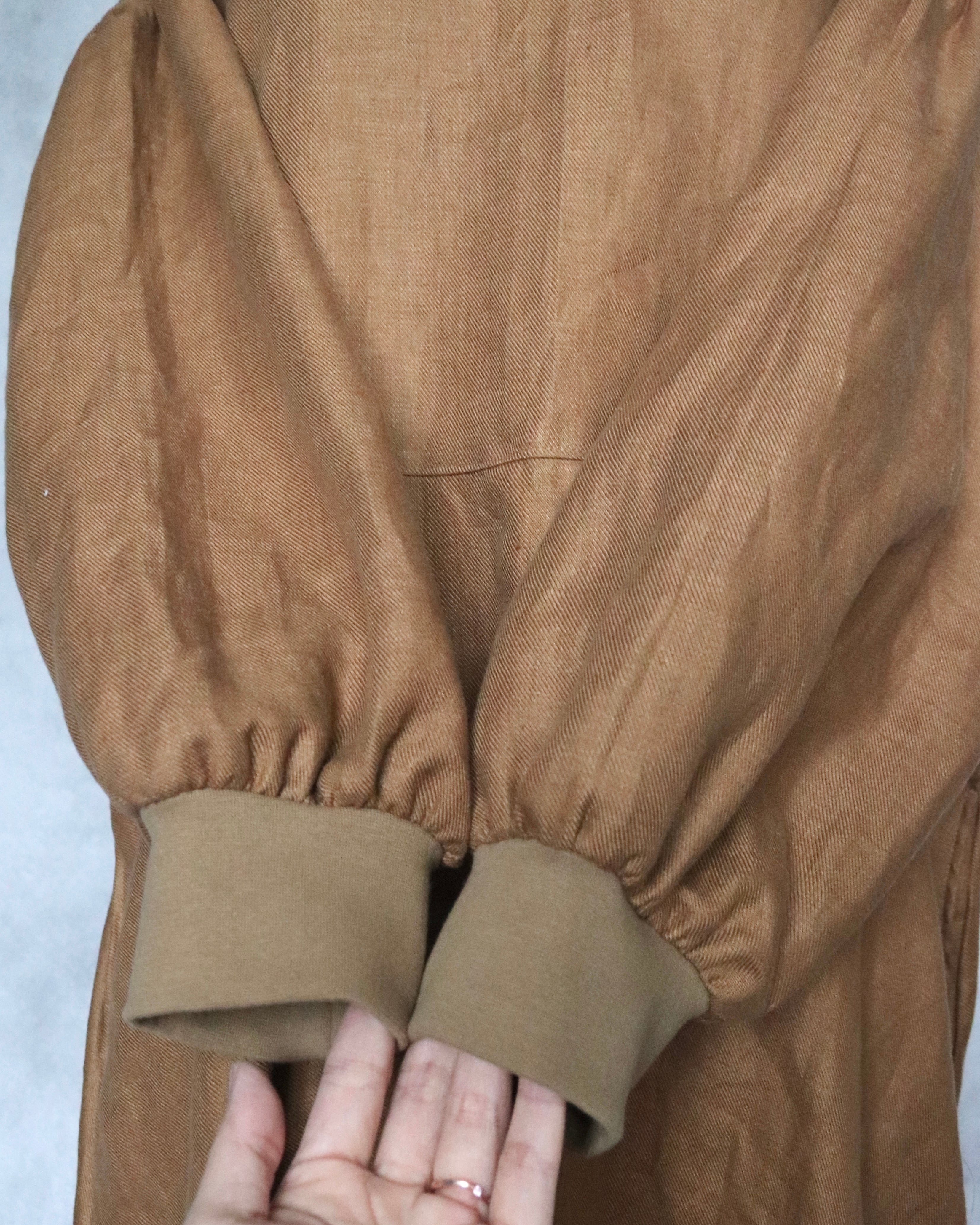 しっとりと厚みのある生地に感じますが、着用するとやはり、そこはリネン。