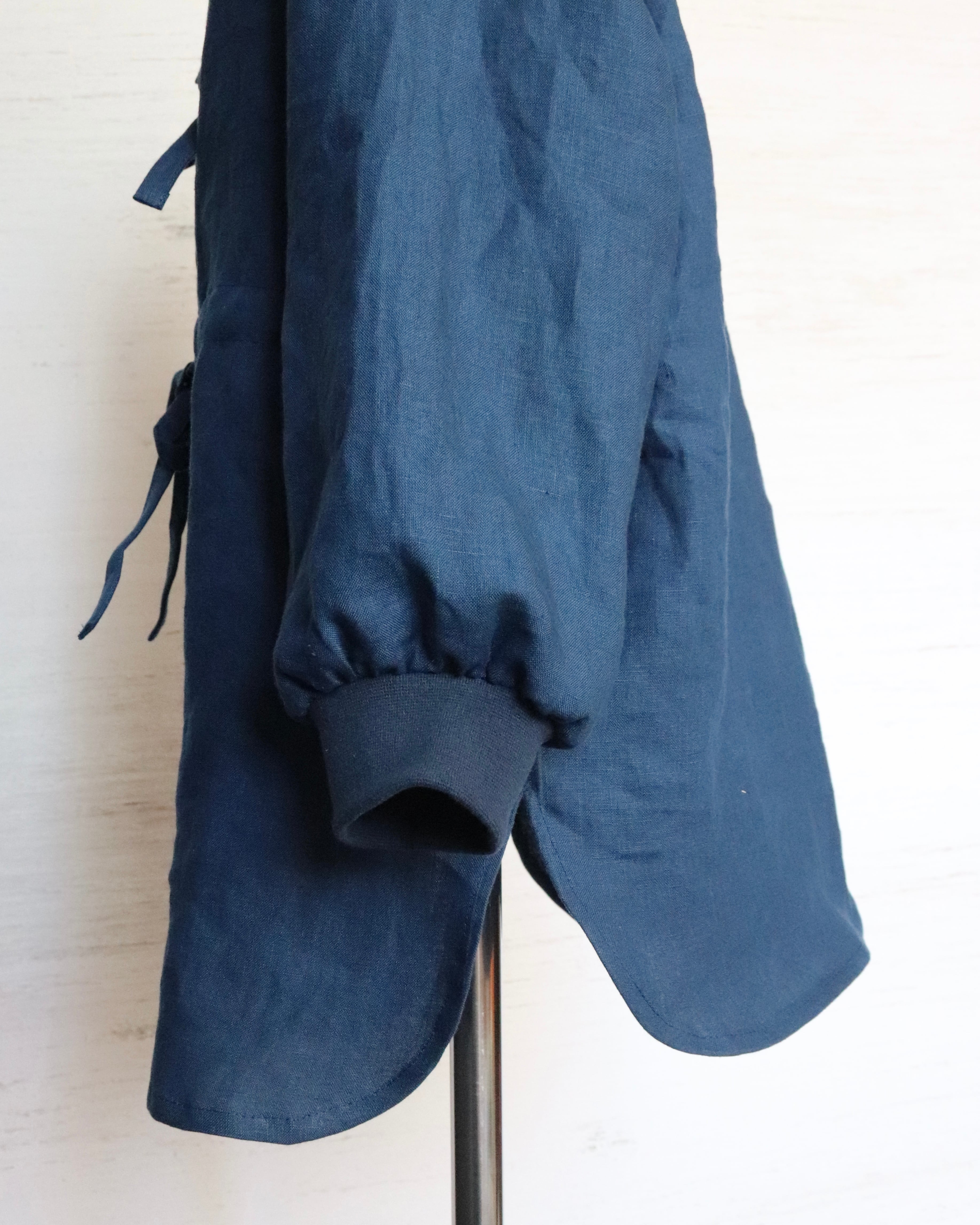 暑がりな子どもが、服の上に重ねて着るかっぽう着。通気性がよく、湿気を逃してくれるリネンはベストな素材です。